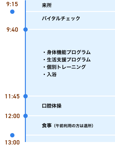 専門知識を持った職員が多く、レベルの高い機能訓練を提供することができるのが私たちの強みです。また、個々のご利用者の生きがいにつながるような、趣味活動、役割活動、楽しみ活動も職員と行っていく予定です。ご利用者に、心身機能の維持・向上と共に、生き生きと楽しく過ごしていただけるよう努力してまいります。