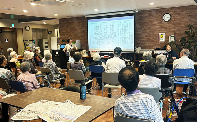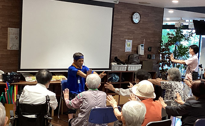 立って踊ることが難しい方には、椅子に座ったままでステップを踏んだり、パーキンソン病や片麻痺の方もバランス感覚の訓練として取り組まれ、どなたでも参加しやすいプログラムになっています。