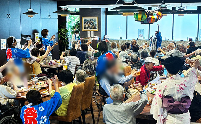 夏の暑い時期に夏祭りを兼ね、ノンアルコールビアホールを開催しています。