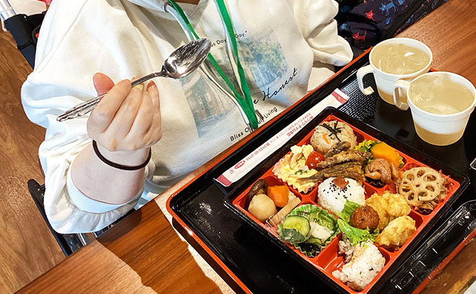 食を通して意欲の向上をはかることを目的とし、定期的にテイクアウト弁当の日を設けています。