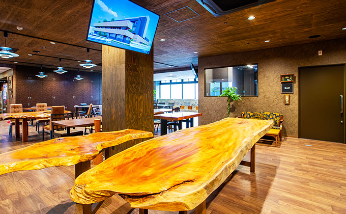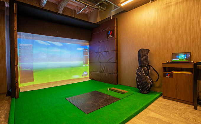 本格的なゴルフ体験を室内で楽しめる専用シミュレーターを設置。