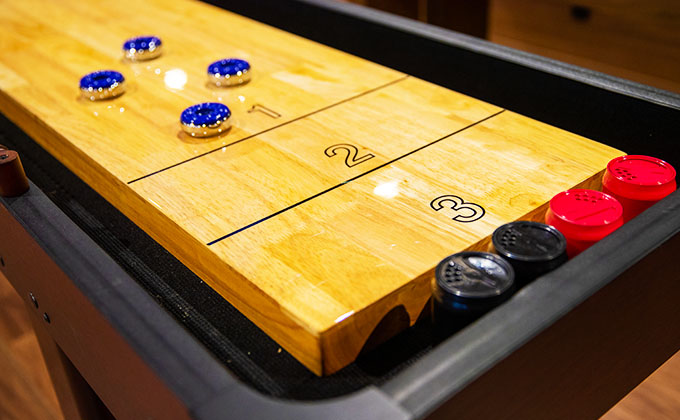 誰でも気軽に楽しめるシャッフルボードを設置。
