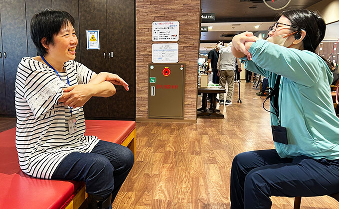 また、同じ病気を経験した方同士のグループで活動するので、気持ちを共感したり情報の交換をしたり仲間ができ、楽しく機能訓練ができます。